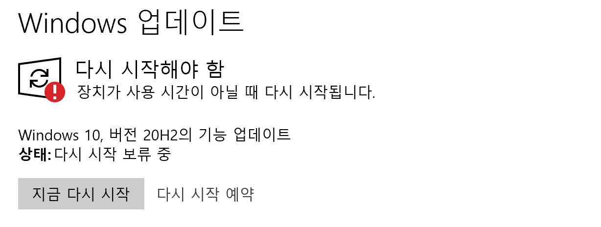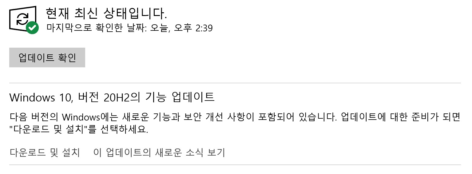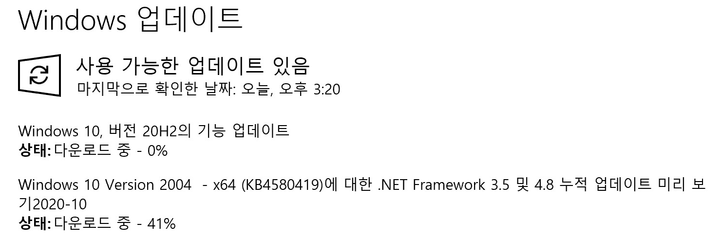 Windows 10 20H2 업데이트 완료.