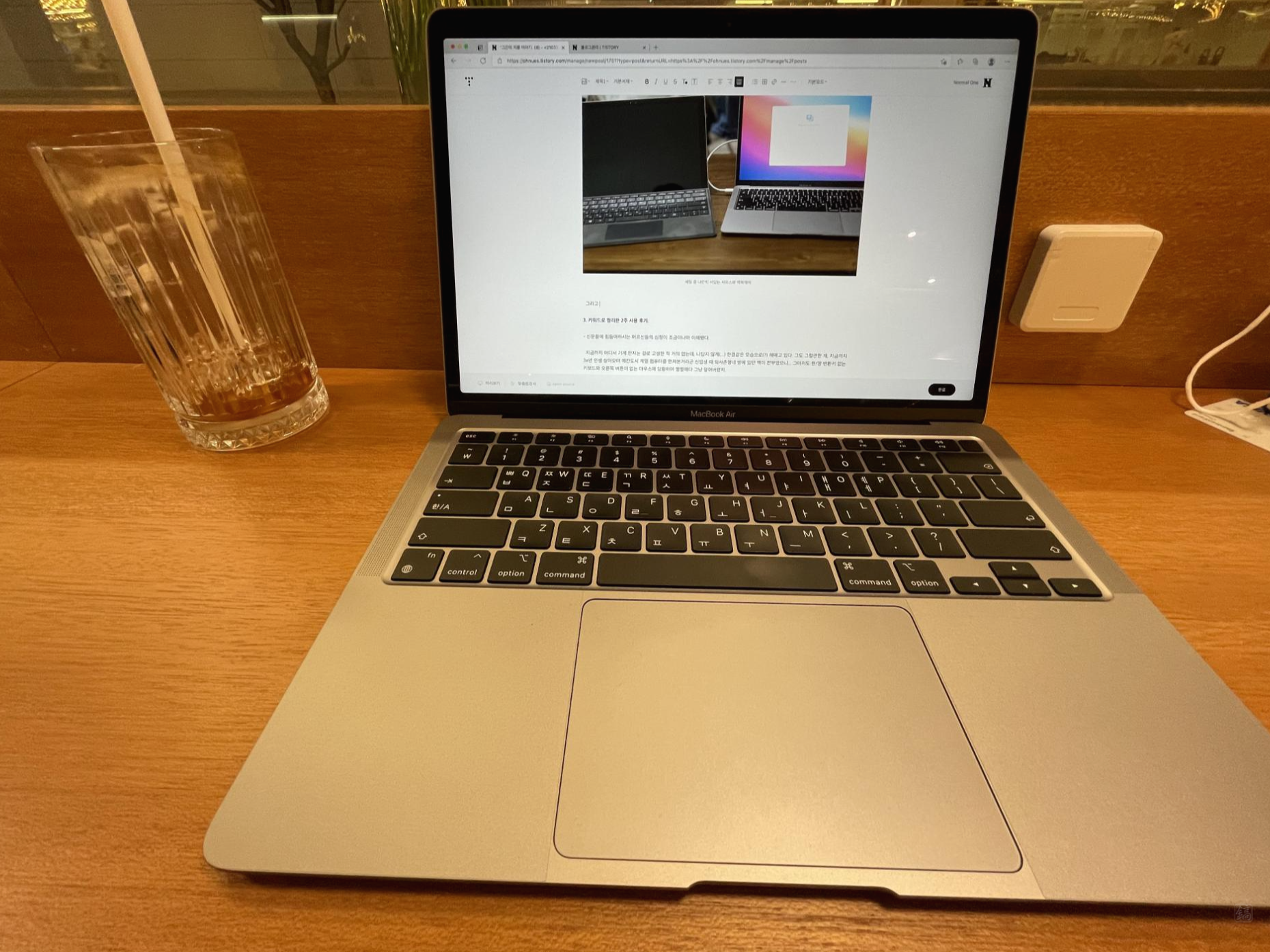 그리고 시간이 흘렀다. 어느새 맥북 에어를 쓴 지도 보름이 지났다. 회사에 다니다 보니 실질적으로 사용한 건 4~5일 정도라 아직도 맥북이 새롭지만, 사용하는 동안만큼은 나름대로 밀도있게 사용했다. 워낙 처음 써보는 기기라 적응이 필요했으니... 비록 길지 않은 시간이지만, 짤막하게나마 느꼈던 부분을 기록을 남겨보고자 한다.
