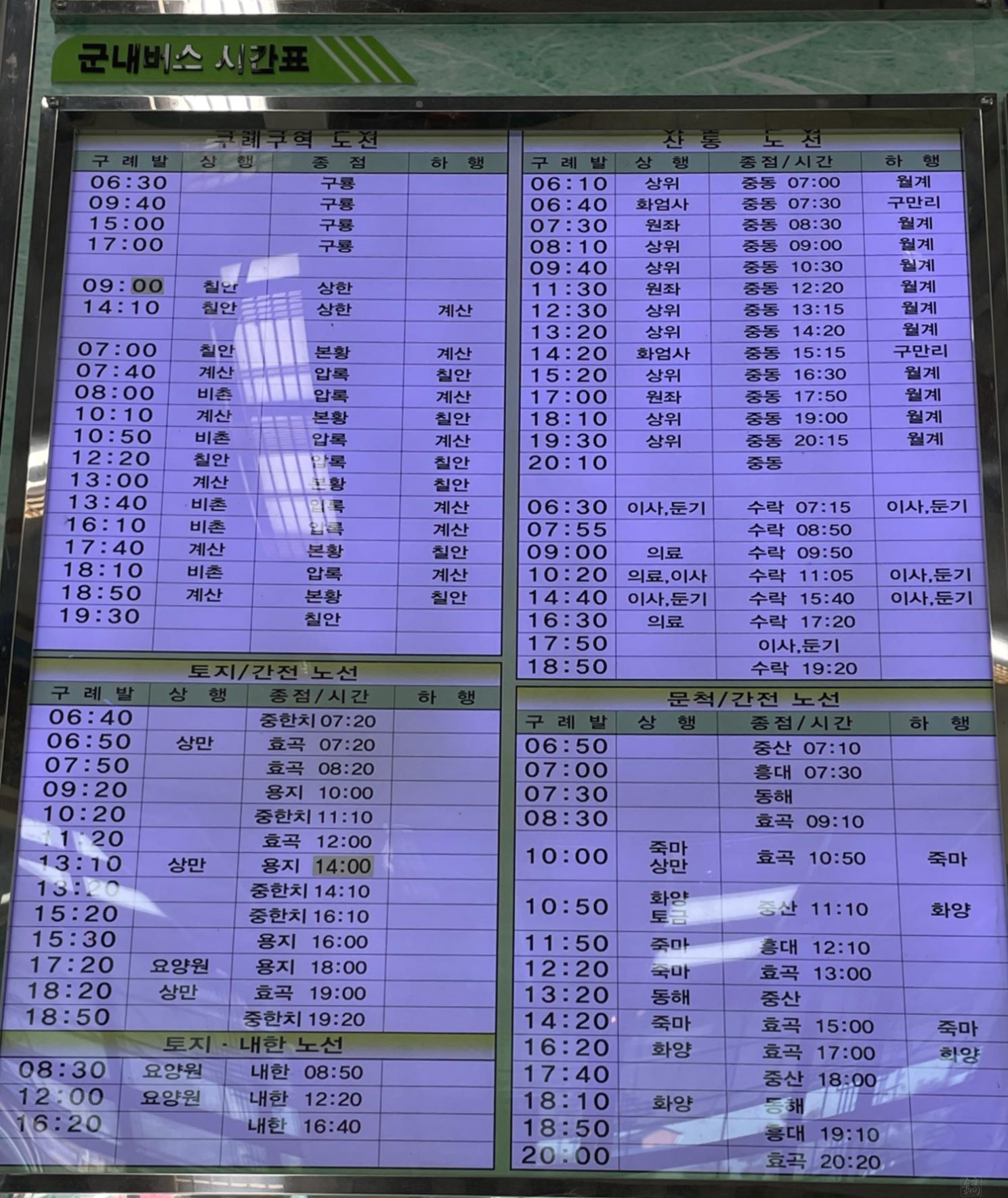 1. 구례터미널 시간표