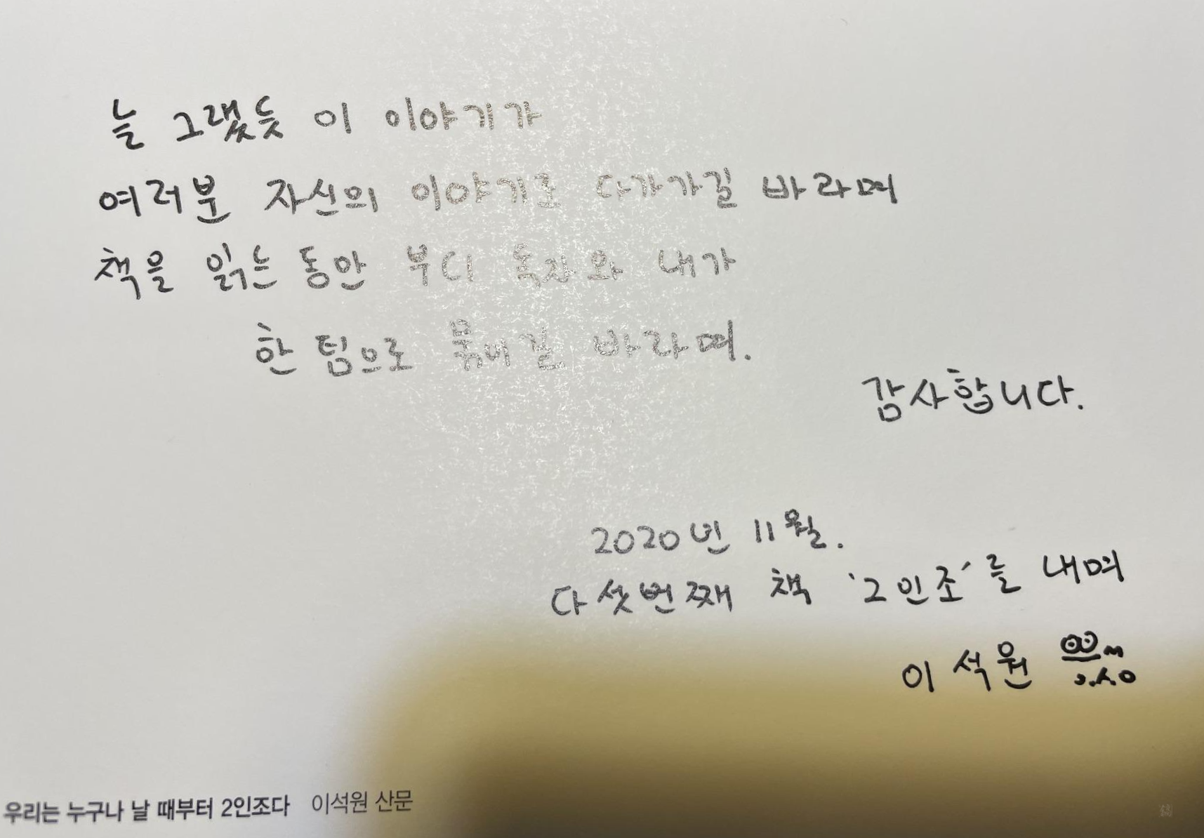- 2021년 새해에 광화문 교보에 갔다가 바로 픽업. 이젠 믿고 보는 이석원 에세이니까?