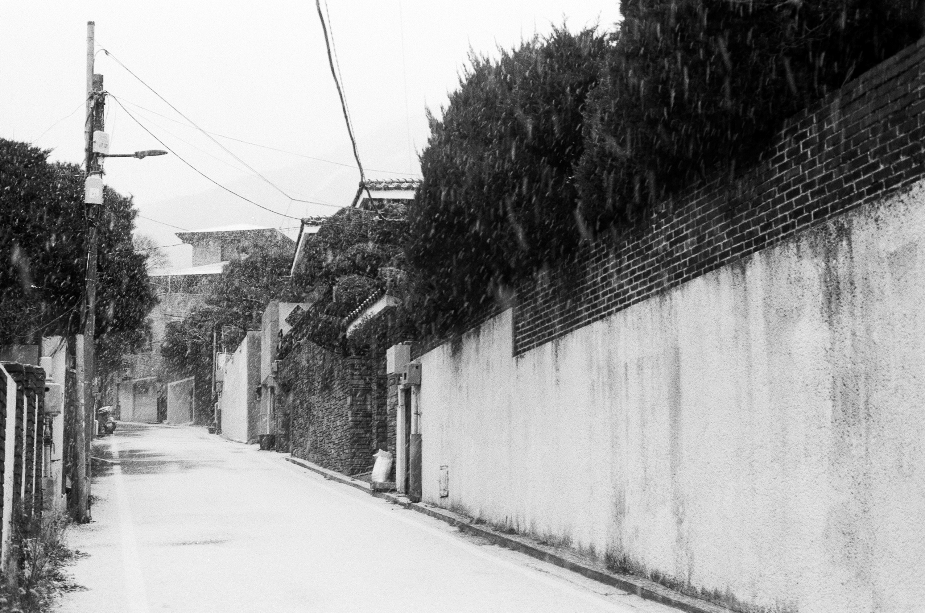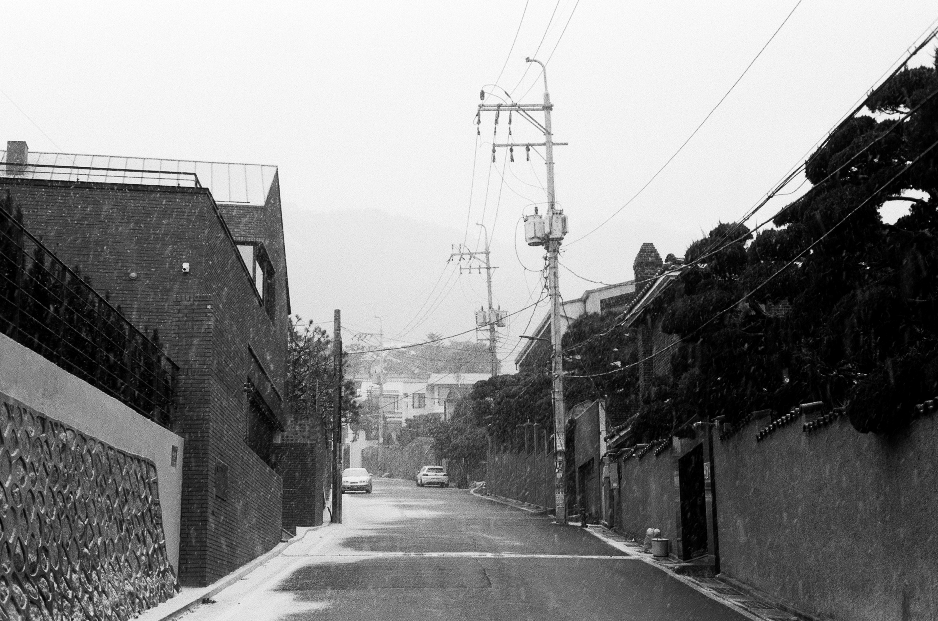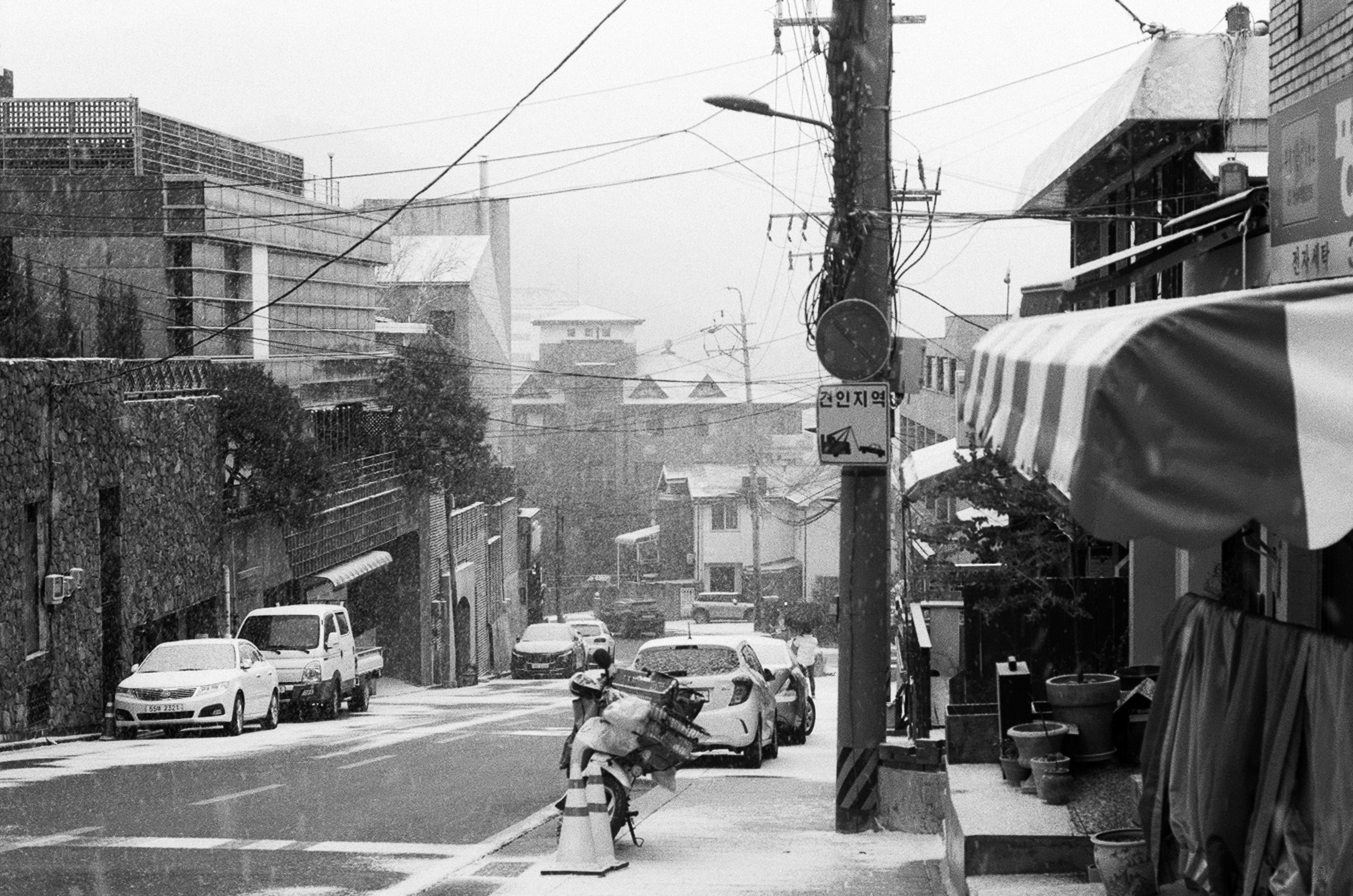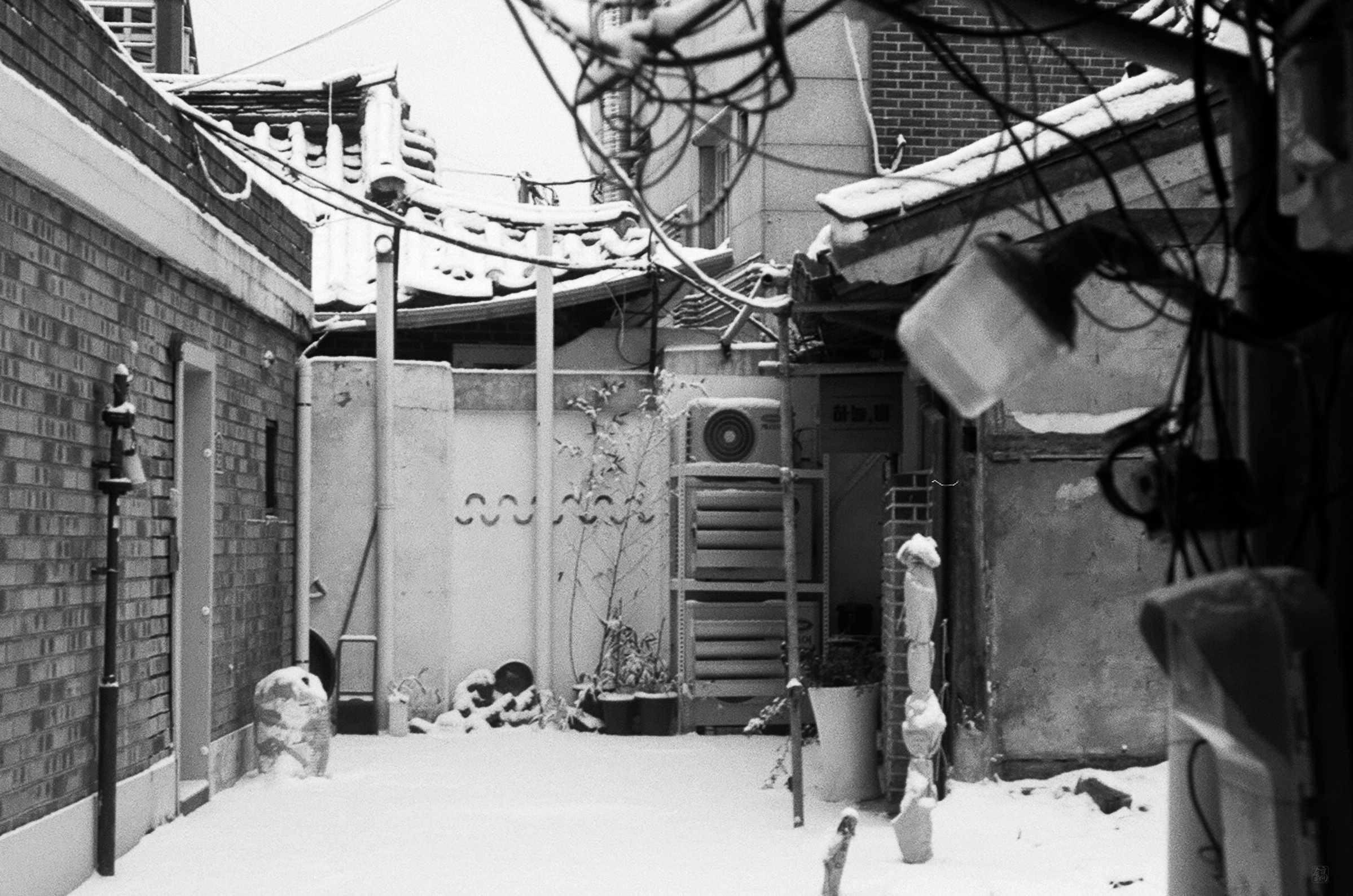 그러다 지난 주말에 방 정리&추가 물품 구매가 얼추 마무리되고(그 이후에도 몇 가지 추가작업을 진행하긴 했지만...), 시간 여유도 있어 오랜만에 카메라를 들고 서울을 돌아다녔다. 때마침 첫 눈이 예고된 날이어서 눈발이 흩날리는 서울 골목을 담는 것도 괜찮을 것 같아 목적지로 갔는데, 버스에서 내리자마자 본격적으로 눈발이 날리기 시작했다. 그 때만 해도 눈발이 그리 심하진 않았던지라 여유롭게 골목을 거닐며 몇 컷 담았는데...
