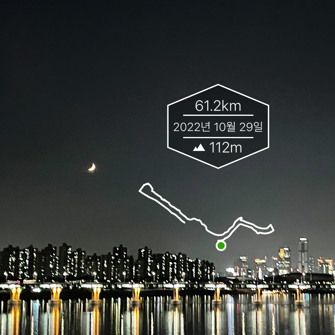설상가상으로 난지공원 쪽에 편의점 있는 줄 알고 망원 편의점 그냥 지나쳤다가 보급 타이밍도 놓치고, 고양시로 넘어가니 길도 모르는데 불빛도 없고🤦♂️ 결국 그 상태로 행주산성까지 꾸역꾸역 갔고, 그제야 뒤늦게 편의점에 카페 커피까지 보급했지만, 허벅지는 이미 나락행😇 그렇게 시간이 너무 많이 지난 데다 기온까지 떨어졌기에.. 당산에서 지하철 타고 집으로 점프했다. 1달 전의 나였으면 그 시간에 이미 출발점에 있었을 텐데...