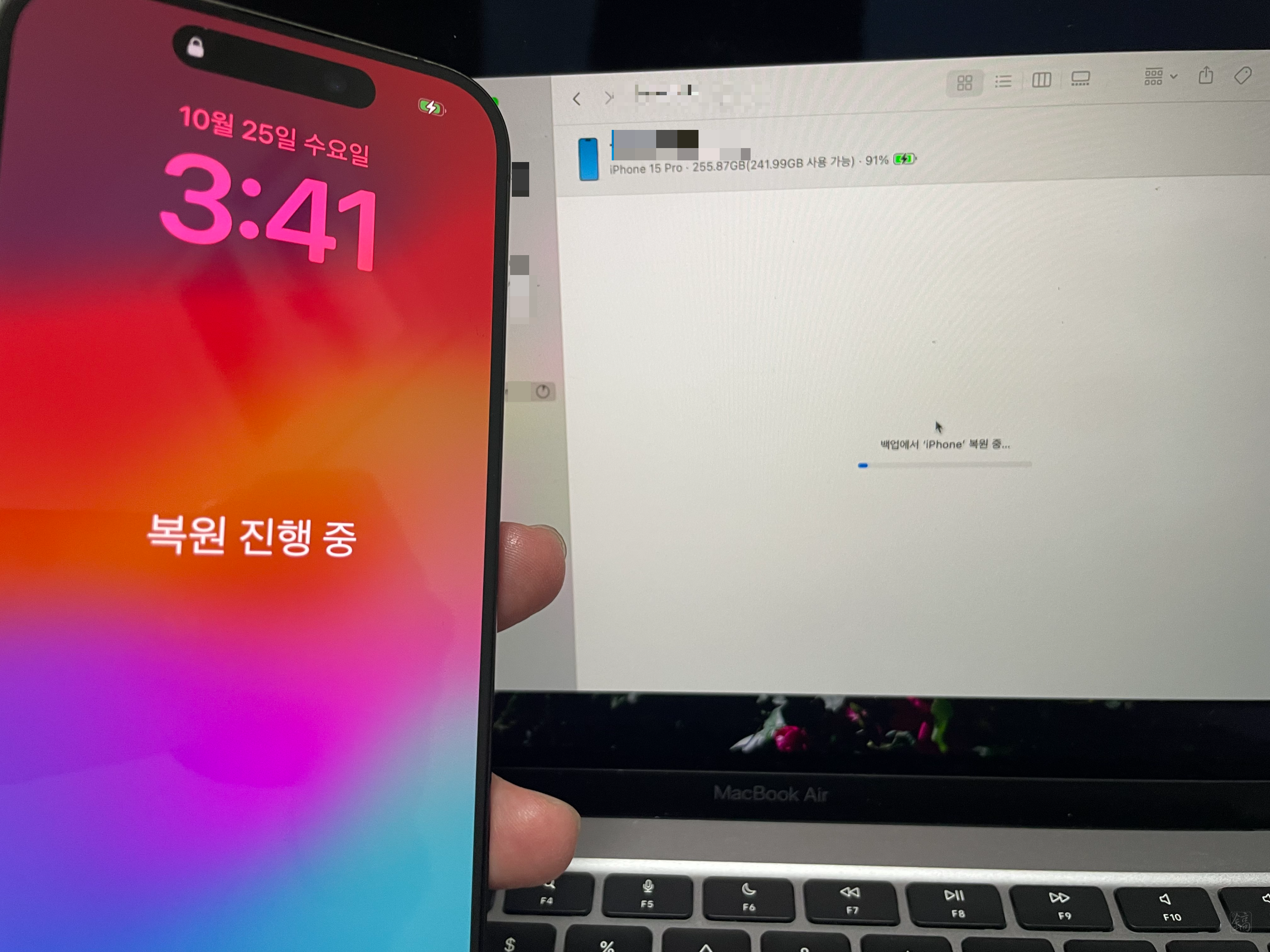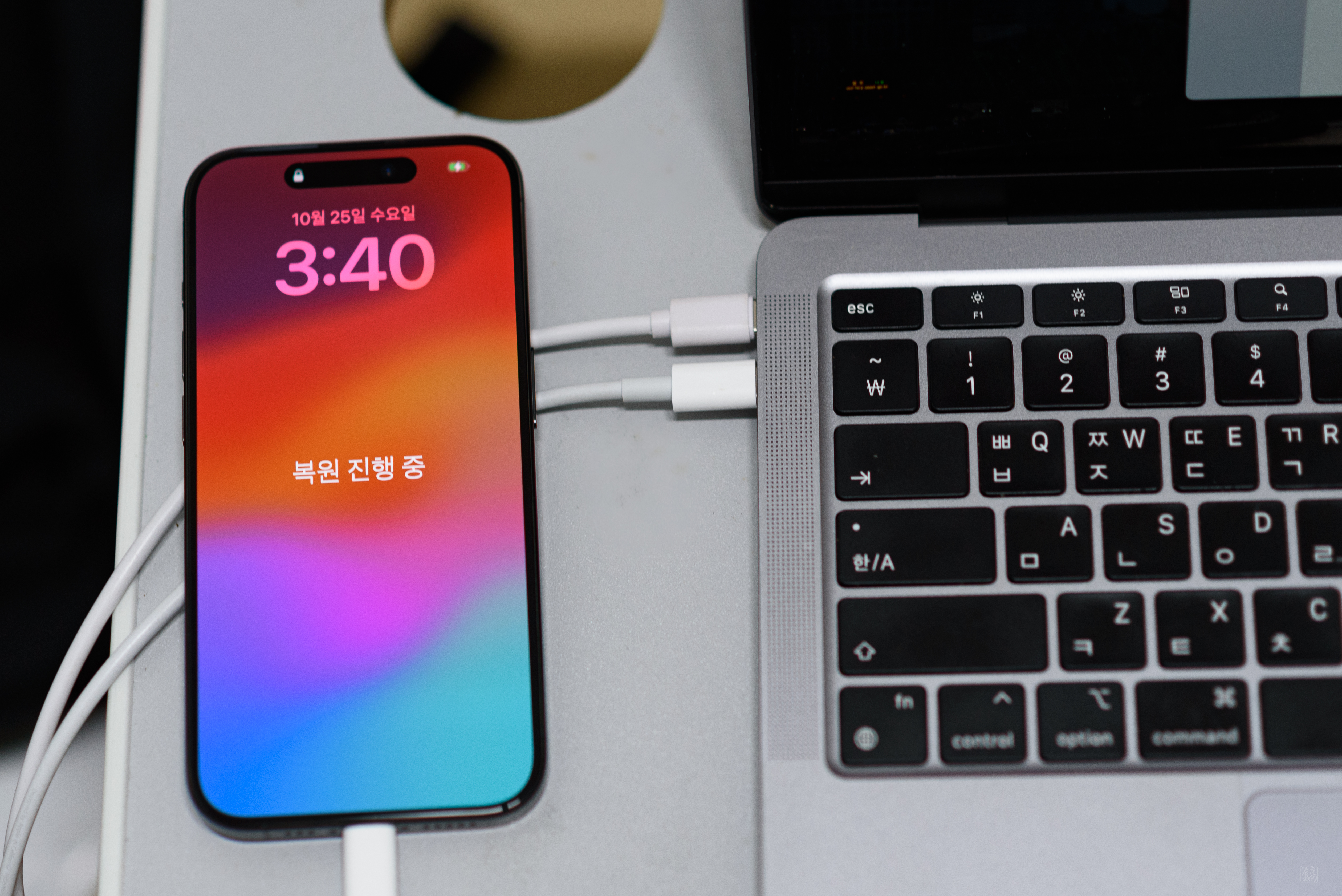지난번에 아이폰 X에서 12 mini로 옮길 때도 그랬지만 무선으로 하니 너무 소요시간이 길었다. 결국 이번에도 지난번과 마찬가지로 노트북을 통해 데이터를 옮기기로 했다. 그 사이에 노트북도 맥북으로 바꿨으니 시간이 더욱 단축될 거라 기대했고, 예상대로 그리 오랜 시간이 걸리지 않았다.