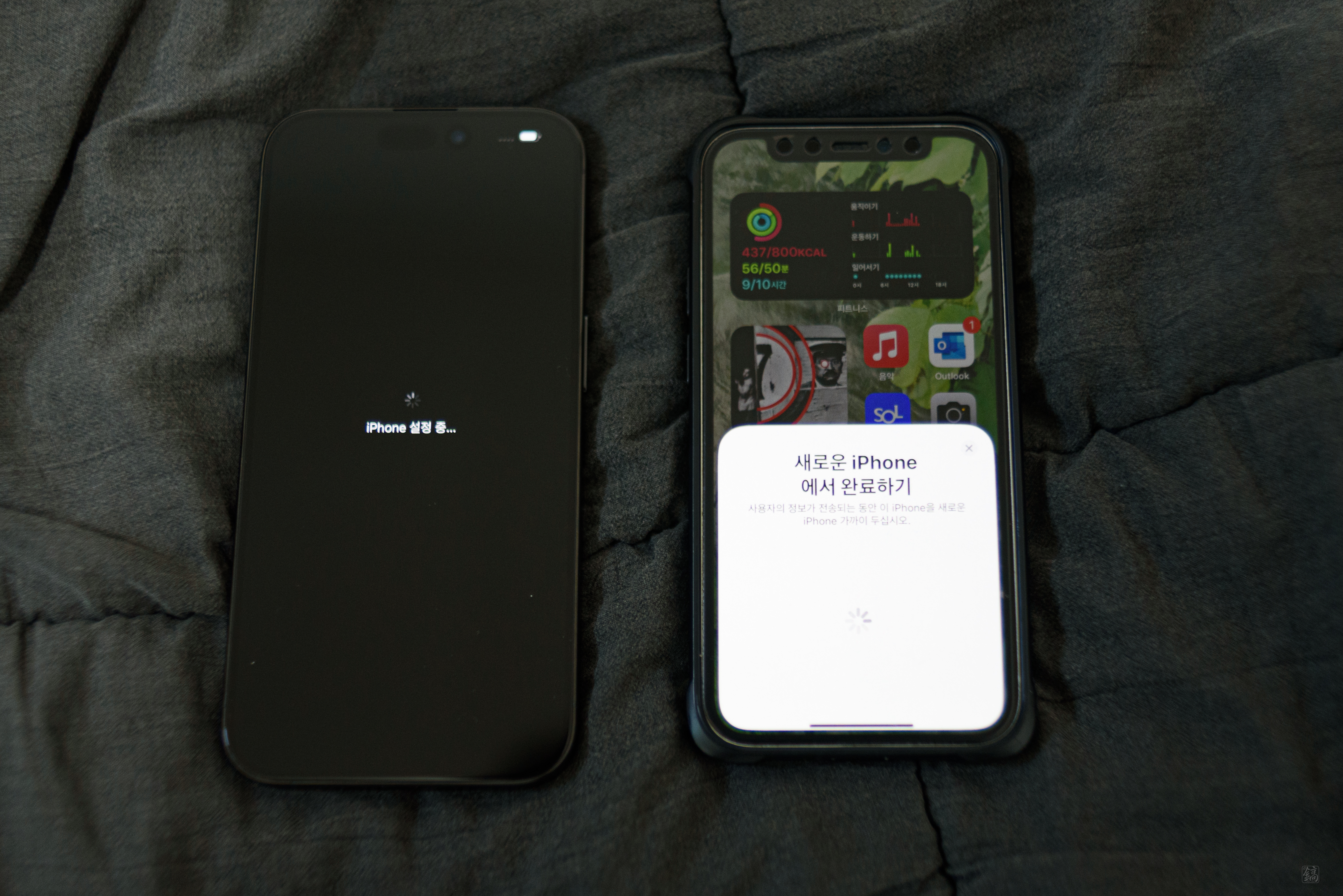 아이폰 주변을 이리저리 둘러본 후, 아이폰 전원을 켰다. 역시 이번에도 인삿말이 날 반겨줬다. 인삿말을 볼 때마다 설레는 건 어쩔 수 없나보다. 설레는 마음과 함께 본격적으로 초기 세팅 작업(데이터 옮기기)를 진행했다.