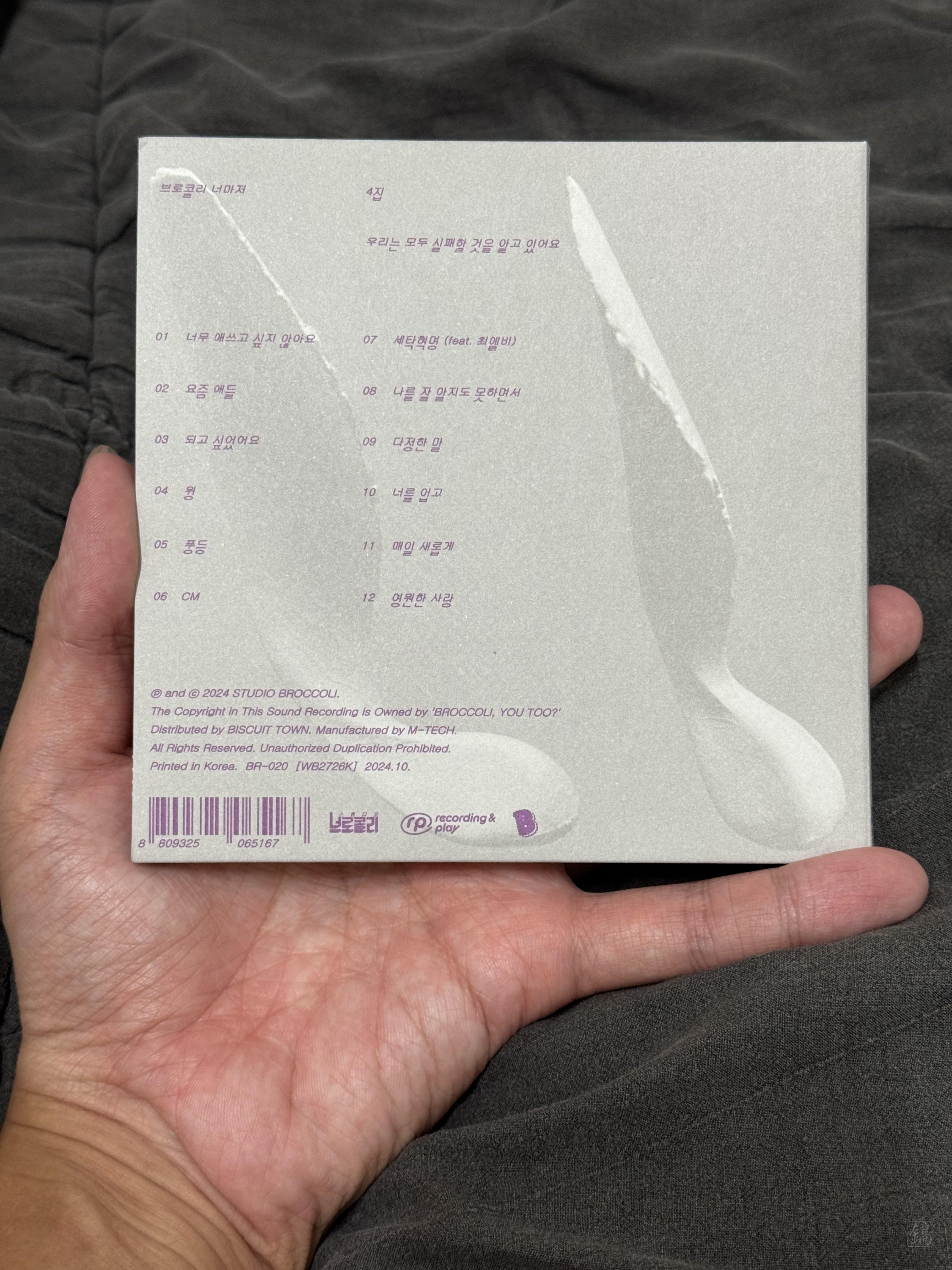 와 이게 얼마만인지..! 저어어어엉~말 오랜만에 앨범 하나 장만했다. 이번에 장만한 앨범은 브로콜리 너마저 4집, 5년 만의 신보! 올 초 정규앨범을 준비중이라는 소식을 처음 접했을 때부터 기대했는데, 지난 9월, 그 기대를 저버리지 않는 결과물(?)을 확인하고선 CD가 정발되기만을 기다렸다. 그리고 10월 중순경에 CD 판매 예약글이 올라오자마자 바로 지름! 그 후 사흘 전에 앨범이 도착했다.