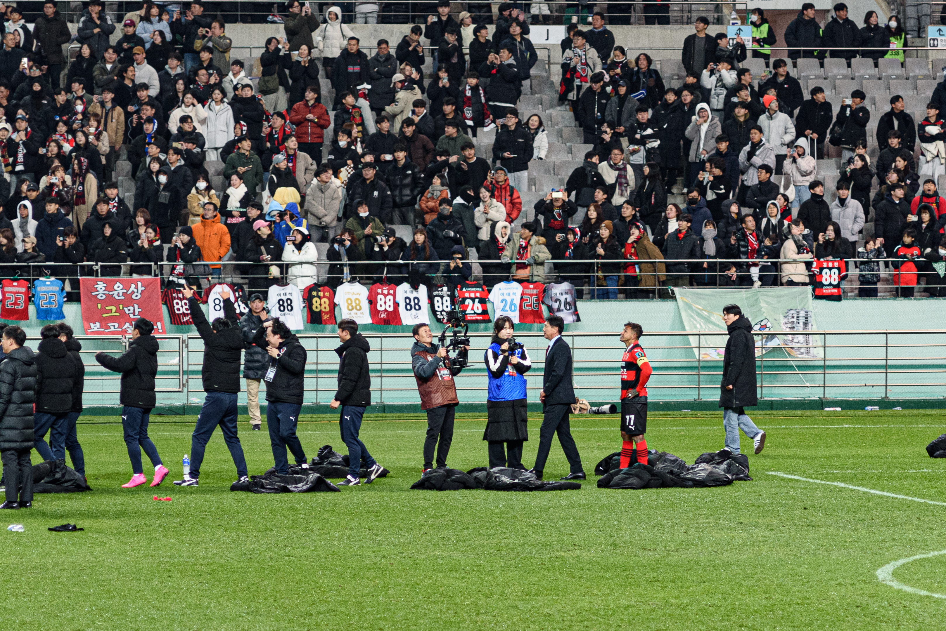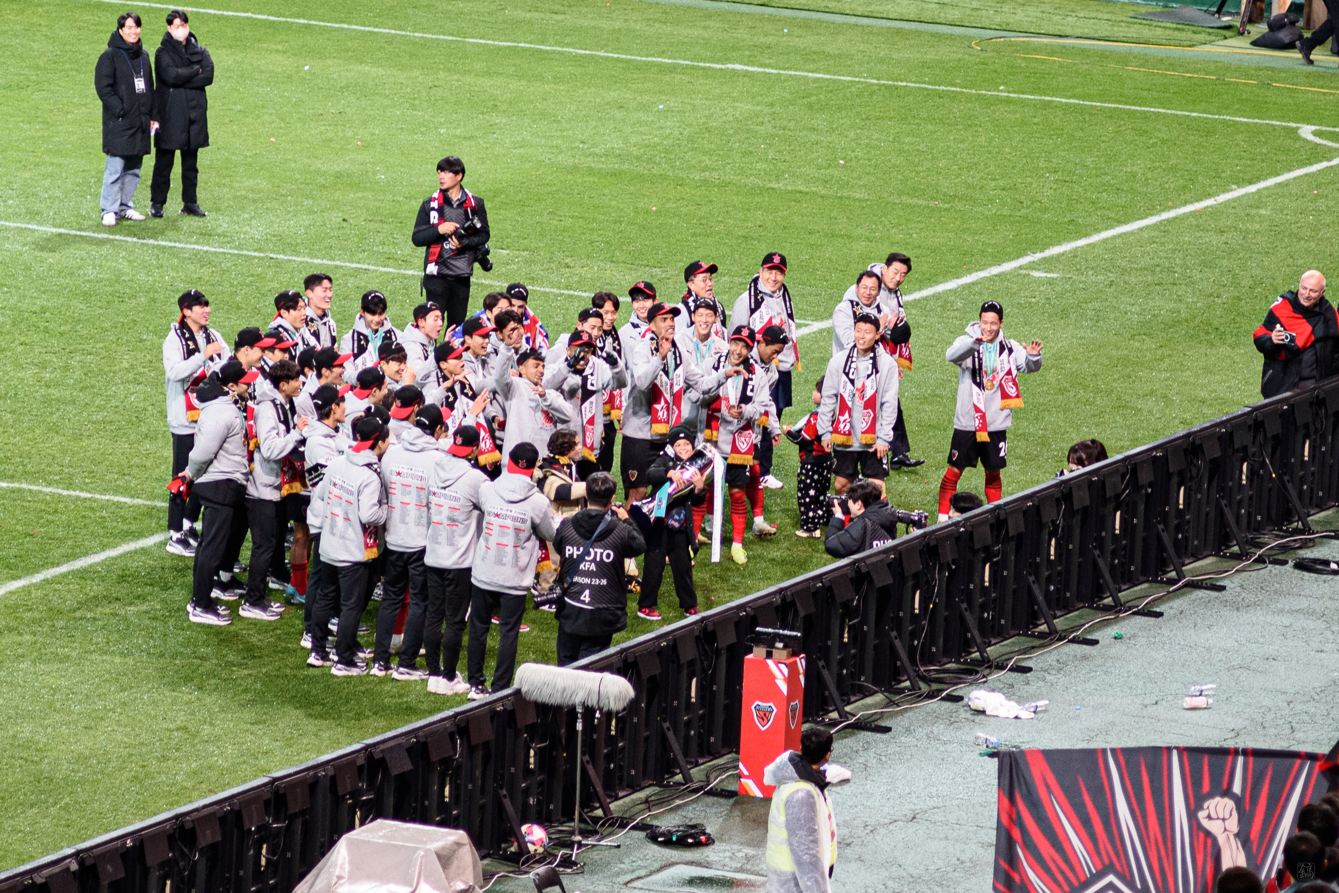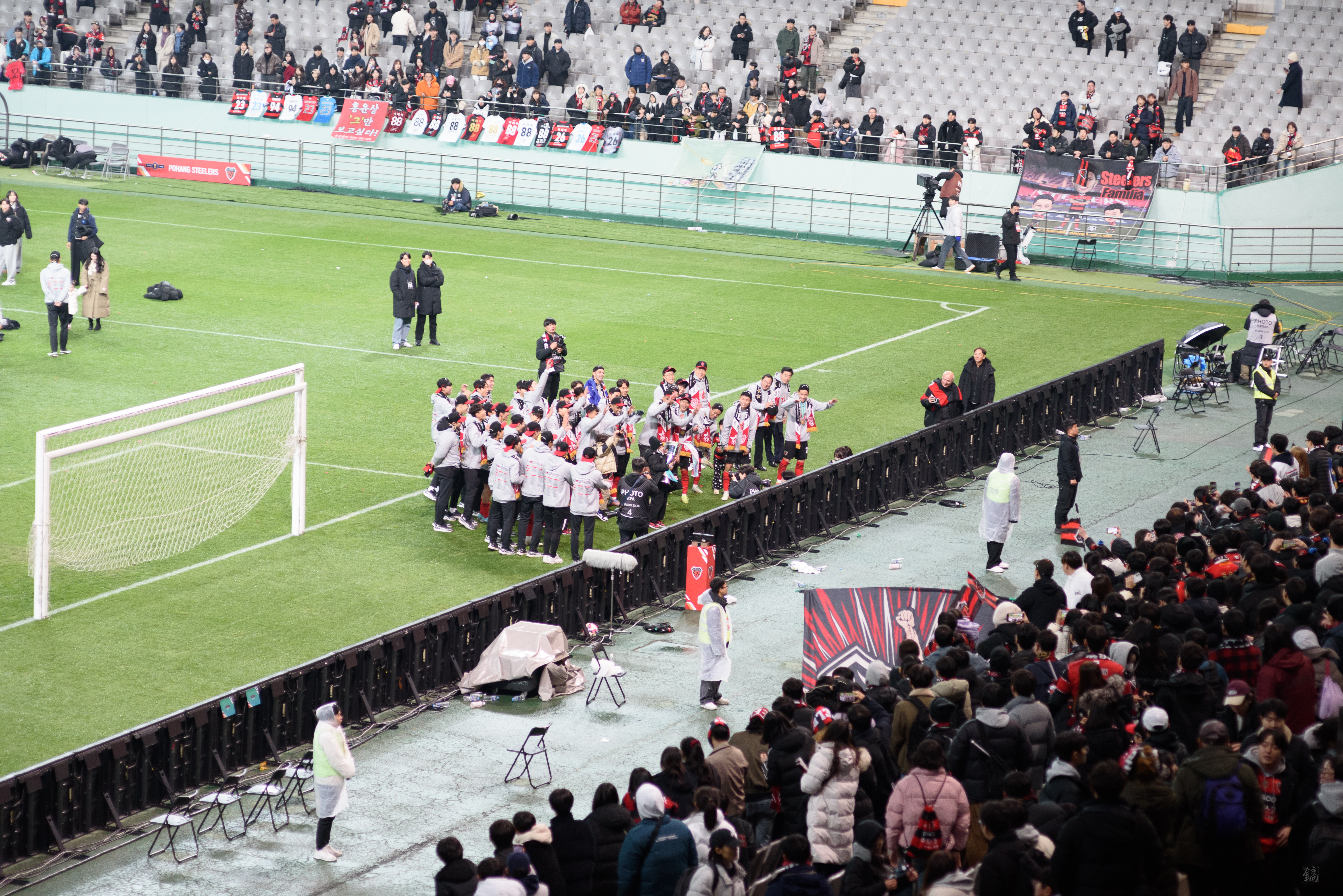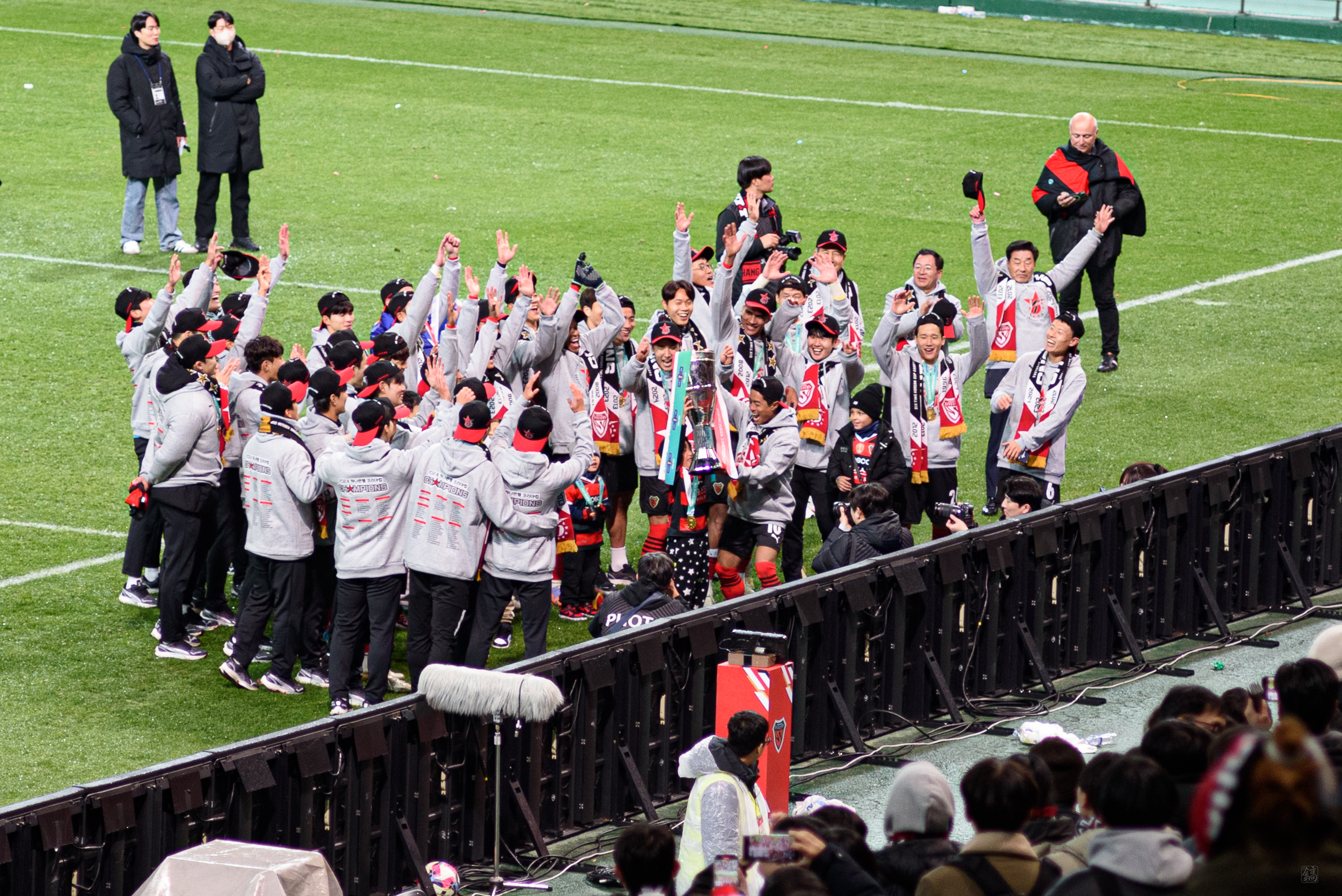 모든 시상식이 끝나고, 그냥 갈까 하다 좀 더 남아서 선수들과 서포터즈들이 함께 하는 모습을 지켜봤다. 여기서도 트로피 세레머니 하는데, 이보다 더 기쁠 수 없더라. 그렇기에 사진과 영상을 계속 남겼다.