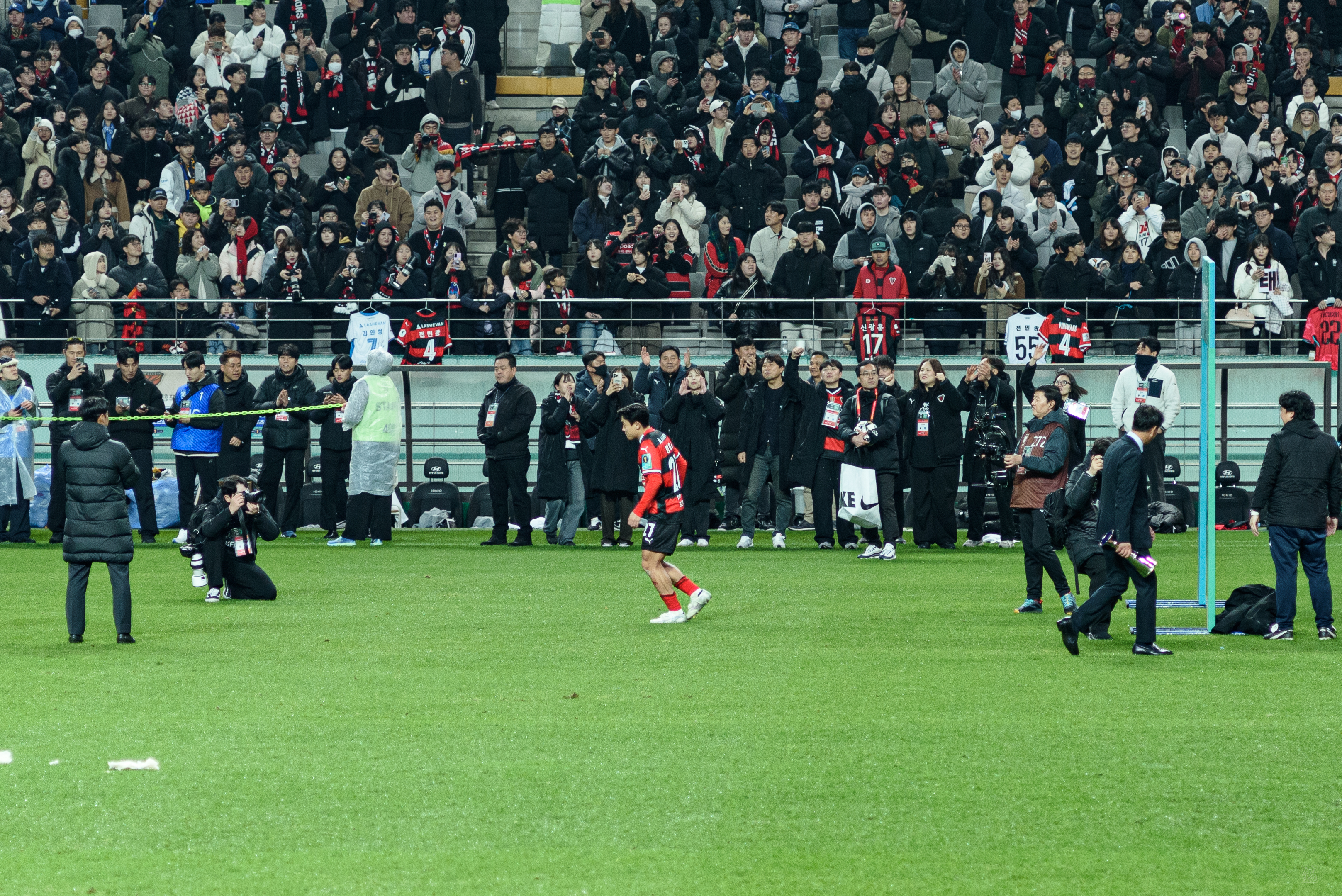 연장 후반 추가시간 4분도 지나고, 울산의 마지막 크로스를 윤평국이 잡으며 승리했음을 확신하여 손을 들었다. 공을 높이 띄우길래 이제 우승 순간을 즐기려고 일어나려는데 강현제가 엄청난 터치와 함께 기회를 만들었고, 확인사살까지 마무리했다!!! 딱 그 골 터지는 순간 영상을 찍으려던 걸 까맣게 잊고선 목놓아 환호했고, 이내 다시 폰을 꺼내들어 그 순간을 영상으로 담았다. 다행히 골과 함께 경기가 끝난 덕에 우승 순간을 담을 수 있었다.