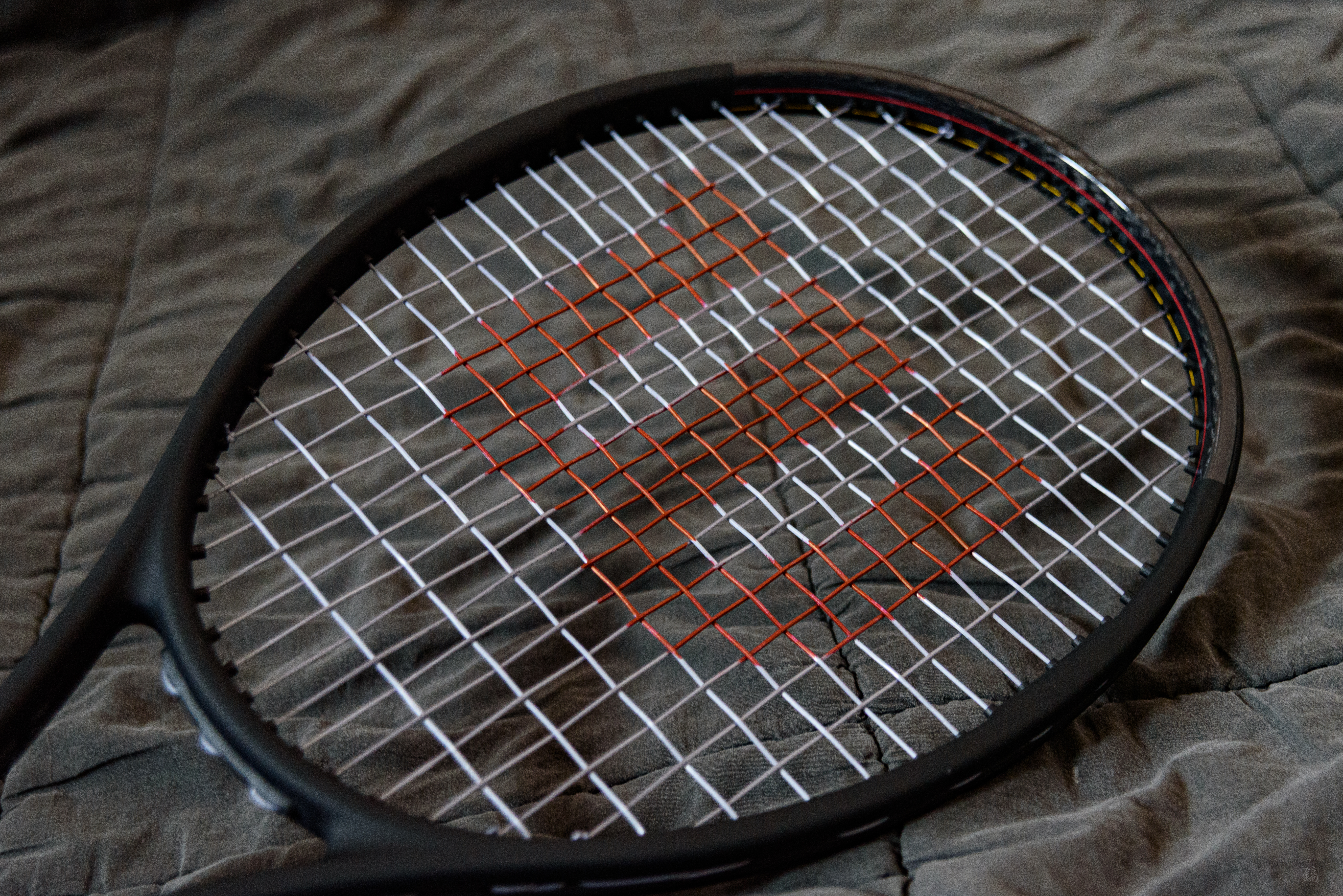 여전히 마음 한켠엔 어제의 그 실수에 대한 잔상이 남아있지만 그걸 자양분으로 삼아 지금 라켓을 더 소중히 아껴주기로 마음먹었다. 그 마음을 담아 집에 도착하여, 스트링 작업이 끝난 라켓을 카메라에 담았다.