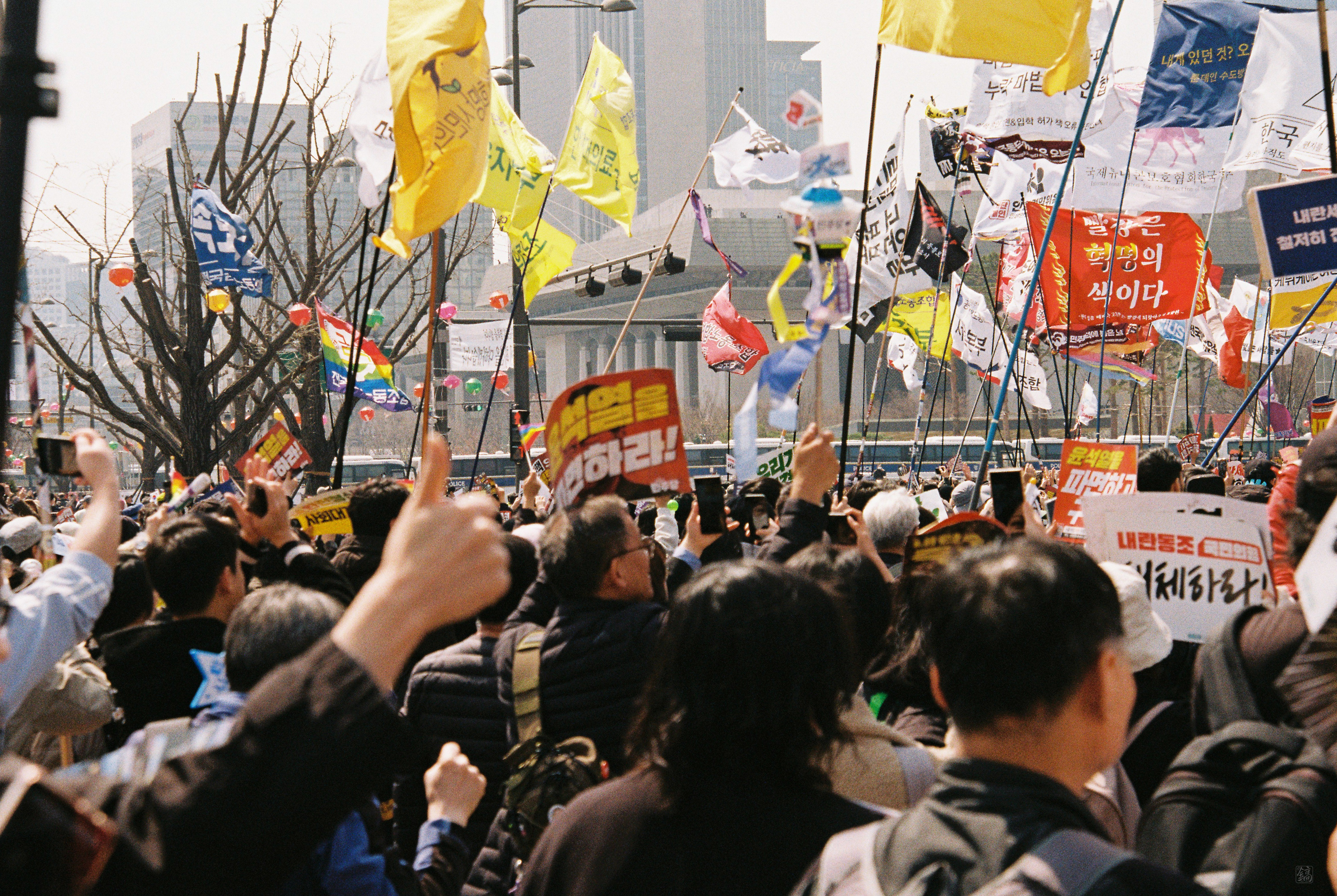 사실 이번엔 필름을 빨리 채울거라 예상은 하고 있었다. 이번 금요일 백만년(이 아닌 2년 반)만에 라팍 직관 티켓을 구했던지라, 오랜만에 라팍과 그 주변 풍경을 담다보면 필름이 꽉꽉 채워질 거라 예상했다. 근데... 탄핵 선고일이 4월 4일로 됐네!? 너무나도 겁쟁이라 혹시나 하는 마음에 안국역에 가진 않았지만, 한줄기 희망을 가지고 만약 내가 바랬던 그 봄이 온다면 그 기쁨을 필름에 함께 담아내고 싶었다.